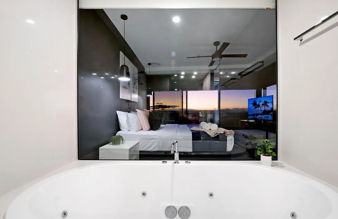 Located 0.7 km from a popular entertainment attraction like iFLY Gold Coast Sports Complex, the 100 m² One-Bedroom Plus Converted Study, No Parking - Hinterland View - Circle On Cavill - Wow Stay apartment offers modern comforts like a lift. Providing a steam room, a Jacuzzi and a sauna, this 1-bedroom apartment is situated just next door to Cavill Mall.
